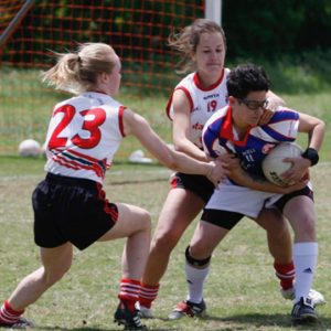 It is typically played between two teams of 15 players on a rectangular grass pitch, although here in North America we play smaller sized games to suit the smaller sports facilities available.